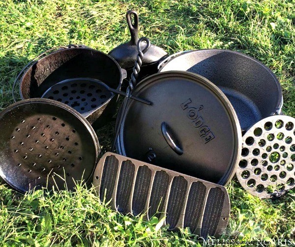 Every pioneer home had a cast-iron skillet. No matter how poor or rich, they all cooked their food with a cast iron pot or pan. Every meal, no matter if cooking outdoors over an open flame on a campfire, on top of the woodstove, a burner on the stove, or in an oven, could be prepared in a cast-iron skillet or Dutch oven (here are 25 of my favorite cast iron recipes).