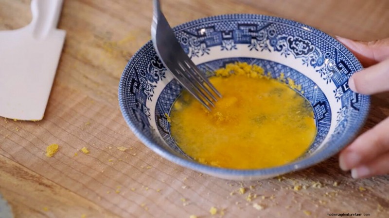 - Take 2 Tablespoons of freeze-dried egg powder and add it to a small bowl.