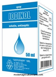Iodinolum – antiseptic, contains iodine 0,1 g, potassium iodine 0,3 g, polyvinyl alcohol 0,9 g.