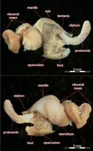 So what they do is they grip the snail with their foot or the bottom. Then they jab this proboscis (fork-like appendage) into the body of the snail eating it out. It seems to use that proboscis and then its own foot to peel open the other snail’s trapdoor.