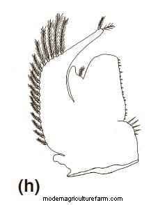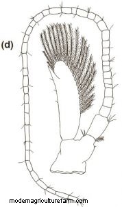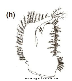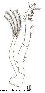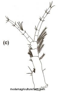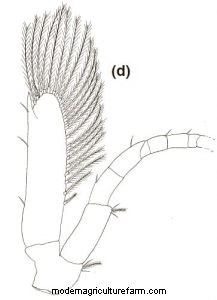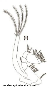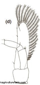 Third Maxilliped: Protopod with eight simple setae and six plumose setae. Endopod foursegmented.