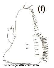 coxal endite with two small plumose setae, 18–20 median plumose setae marginally and six to seven serrated setae, eight spines on its surface.