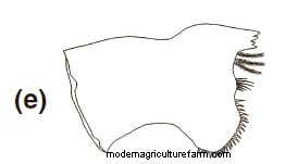 three serrated setae, five plumose setae and two fine simple setae on its postero-lateral margin. Surface smooth