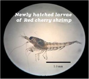Newly “born” cherry shrimp look like the miniature version of the adult with an average length of 2.3±0.5 mm and an average height less than 1mm.