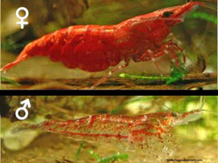 This is another way to distinguish between males and females. However, do not rely on color alone. But with some dwarf shrimp species, it can work. For example, cherry shrimp. The cherry females usually have more red than the males. Males are less colorful (pale or even almost transparent color).
