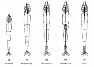 This way of identifying the shrimp’s eggs is relatively easy if you can see through the shrimp’s exoskeleton. However, what if the shrimp has a dark skin pigmentation that hides the saddle?