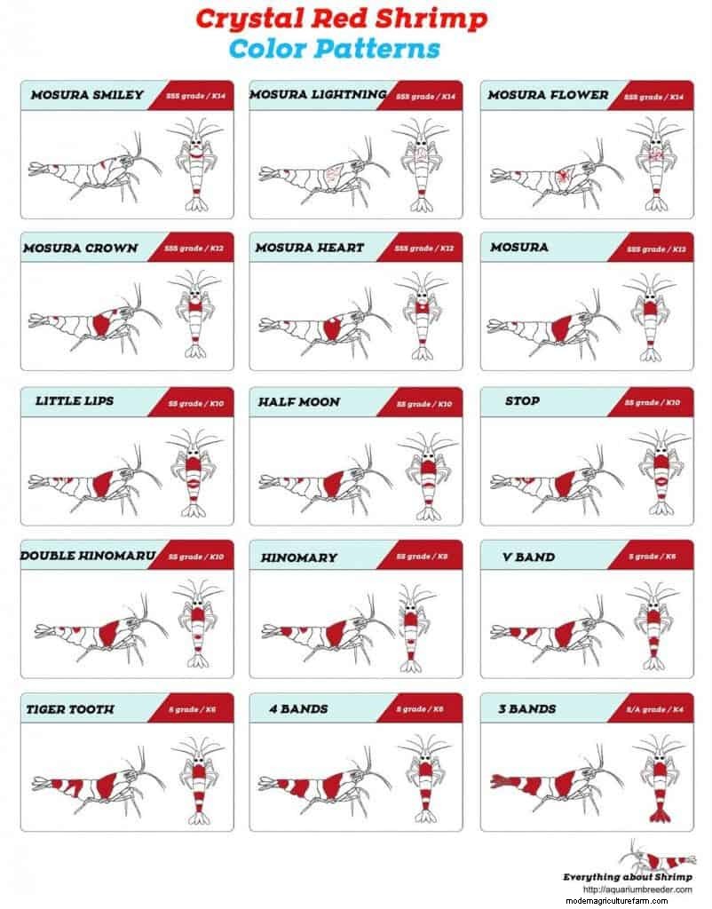 Grading Crystal red shrimp and black shrimp go two ways: color and pattern.