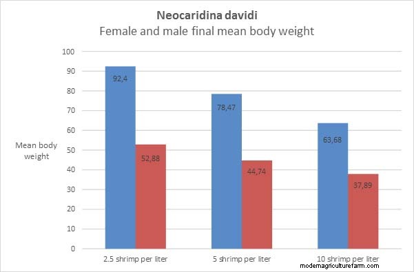 Gender separation was also unaffected by density because of the “non-aggressive nature” of Neocaridina shrimp.