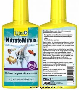 The contained particles promote the activeness of microorganisms, which feed on nitrate and break it down biologically. For example, Tetra NitrateMinus – Click to view on Amazon.