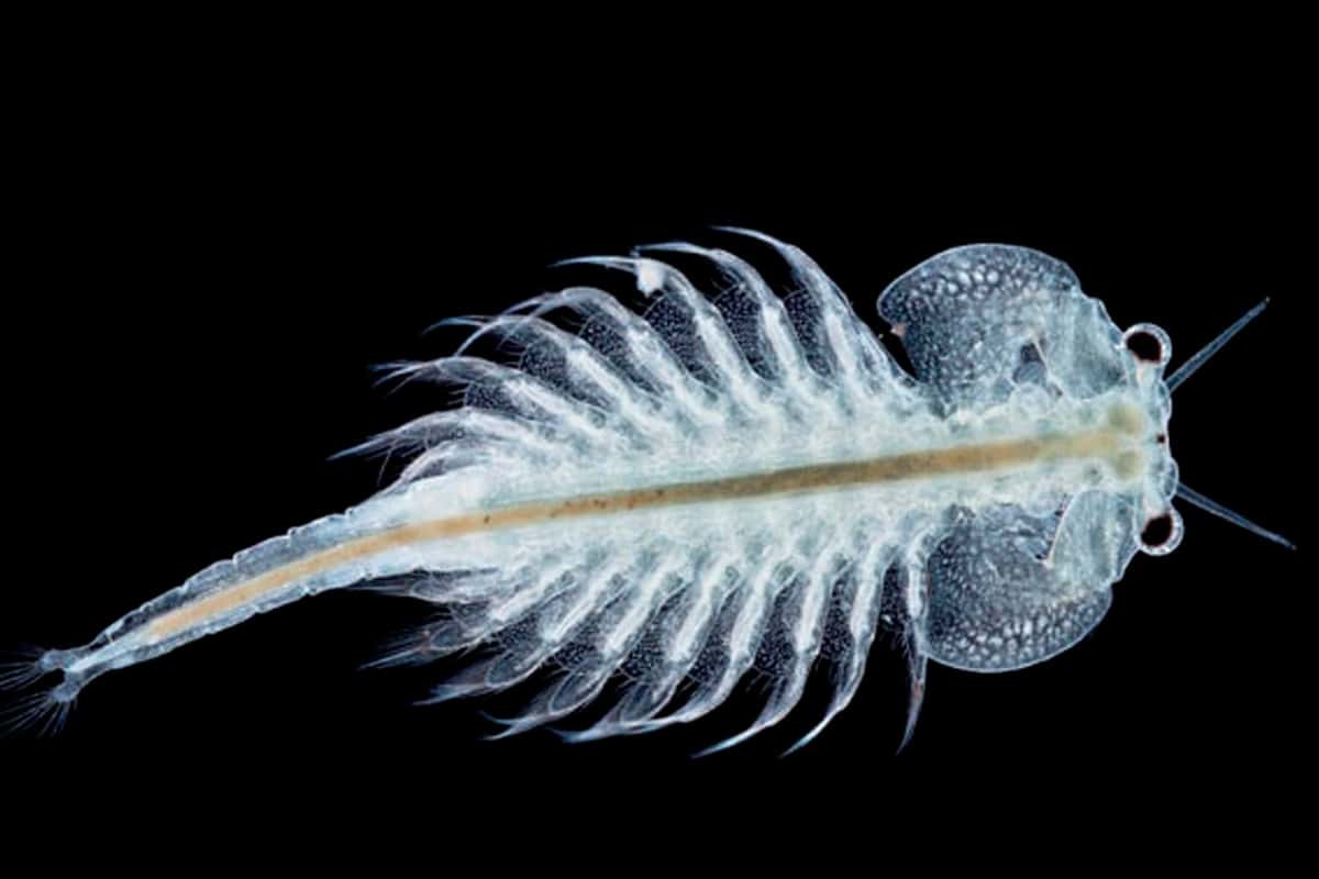 This organism is an arthropod with a distinct segmented body of broad leaf-like appendages called phyllopodia that greatly increase the apparent size of the animal and they often beat in a regular rhythm.