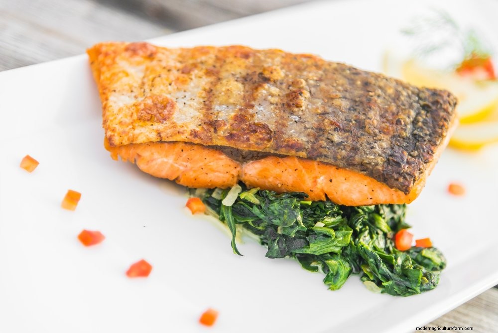 Salmon is one of the most popular fish to eat in the United States, which means we have to be very careful not to overfish it. Eating farmed salmon is one way to make sure that the wild stocks have enough left to keep the population healthy. Today, aquaculture experts can even produce healthy salmon indoors, which means it has zero impact on the surrounding environment.