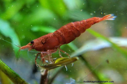 The photos above show a male cherry shrimp on the left (notice the straight belly) and a female cherry shrimp on the right.