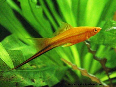 This species is a lot similar to the previous platy fish, and also the guppy from above. You could easily mistake the swordtail fish with either of the 2 breeds mentioned.