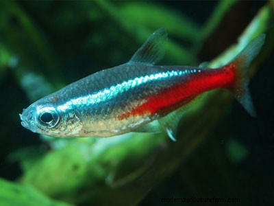 The Neon Tetra rightfully earned its name from the vibrant colors it shows off. You can get this fish in blue, red and translucent colors. It is one of the most basic fish, that is quite popular amongst beginner fish owners.