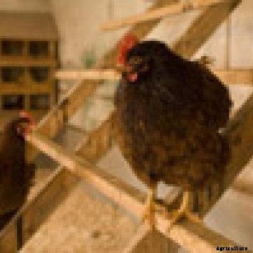 5. Give your chickens roosts. All chickens like to sleep off of the ground. Make sure your roosts are the right circumference so that your chickens can comfortably perch on them, and place the roosts at a height of approximately 1.5 feet off of the ground.