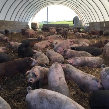 Today, Mardesen has 80 sows producing pigs for Niman Ranch. The company is humane certified, which means the pigs have to be raised to stringent, humane health care standards. Pigs are raised either in a pasture or in deeply bedded pens. There are no crates, no antibiotics unless a pig is sick, no tail docking, and 28-day weaning.