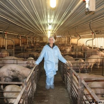 There is a shower at the farm. Veterinarians, nutritionists, or anyone who has been on other pig farms the same day will shower before and after they visit these pigs. If he has a barn with sick pigs, the farmer will shower and change clothes before he goes into a barn of healthy pigs.