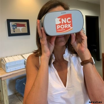 After coming home from the conference, I was excited to see the North Carolina Pork Council unveil its VR at the North Carolina State Fair that year. My state is the second-largest producer of pigs, yet many people have never spoken with a pig farmer or visited a pig farm. Biosecurity, which is necessary to keep the pigs healthy, keeps most people from ever setting foot on a farm. VR brings them right into a pig nursery, where baby pigs are tended, and into a finishing house, where the pigs are moved and cared for until they are ready for market.