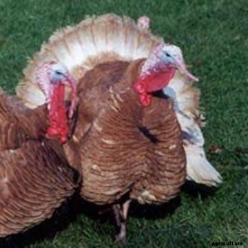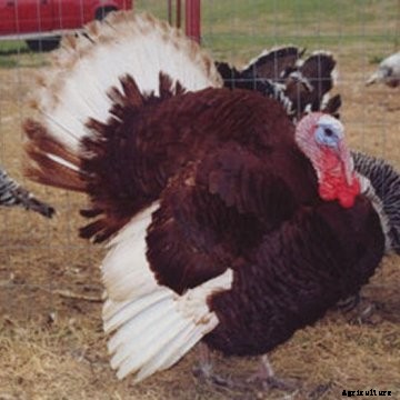 The Bronze variety is stately and imposing in appearance. The standard weight for young toms is 25 pounds and for young hens is 16 pounds. Broad Breasted Bronze turkeys are also in need of conservation. Only a few hatcheries maintain breeding flocks, and many of these are reducing their number.