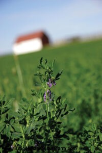 Legumes include alfalfa, clover, lespedeza and bird’s-foot trefoil. Unlike grass hay, legumes are “nitrogen fixers.” Special nodules on the root system contain bacteria, which are able to convert atmospheric nitrogen into ammonium, making them relatively rich protein sources. Unlike grass hay, legumes can be harvested several times during the growing season. A good stand of alfalfa can yield up to four cuttings a year, but the amount harvested will decrease throughout the season. Early bloom alfalfa (right when the first flowers start to open) has the highest crude protein content, sometimes up to 18 percent, compared with 9 to 11 percent for most grass hay. Weeds can be a problem in the first cutting of alfalfa, and while the amount of weeds in the alfalfa crop decreases with later cuttings, the protein content can also decrease.