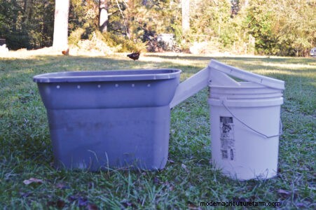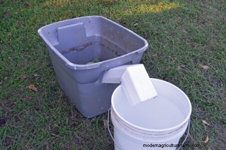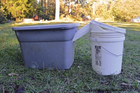 When the larvae turn into prepupae and have finished feeding, they’ll have the instinctual drive to climb from the decomposing organic matter. By installing a tube inside the bin, the grubs will take the high ground and fall out the other side, where a collection bin will be waiting. Along the way, most of the decomposing material will have been cleaned off, leaving you with snacks that are ready for your flock.
