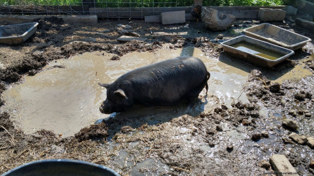 Saying that, our pigs tend to spend most of the warmer months snoozing under trees or beneath trailers parked in their pasture space. They also love any opportunity to cool down by wallowing in mud holes.
