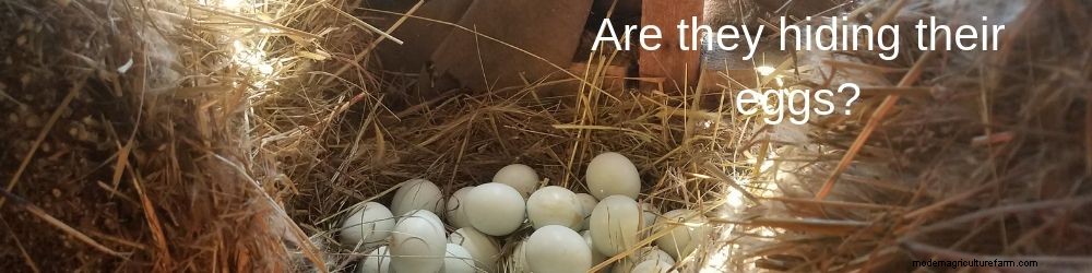 A. While this sounds crazy, it is very common. You go to all the effort of making a lovely nesting box, and they have a different idea of where they want to nest. Go figure. They find their own special place. This could be a plant pot or a dark little posy in behind the garden shed. Some like to go under the coop if room allows. Some in a tall tuft of grass. So put on your Indiana Jones outfit and do some exploring to see if this is happening. This circumstance assumes you have free-range chickens which are not in an enclosure where there are no great hiding spots. For chickens, this behaviour is known as a Broody Hen. If your girls are in a Coop, they could also have developed a taste for the eggs and are eating them.