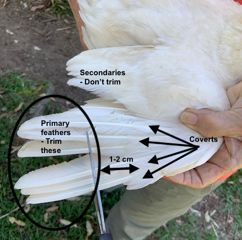 Wing clipping is safe and painless for the chicken, if done correctly. It is an easy way to prevent escapees and to keep your chooks where they are supposed to be.