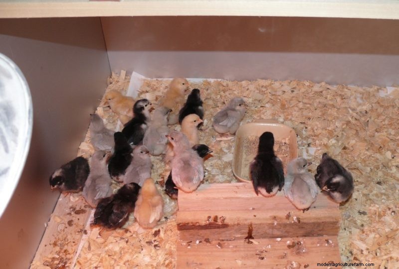 The floor of this metal brooder was too slick for new chicks, so we covered the flooring in paper towels. After the first 3 to 4 days, we added pine chips. Photo by author.