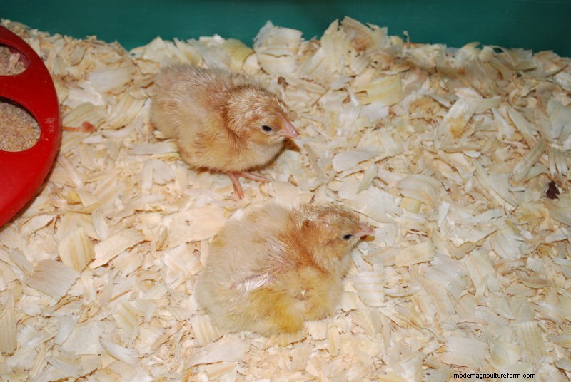 Orville and Oscar as chicks. They never tolerated each other, and Orville was overly sexually aggressive to his hens, often trying to mate with them when they were in their nesting boxes. Photo by Bruce Ingram.