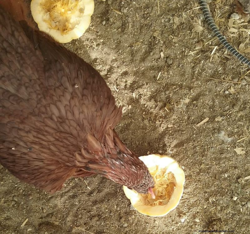 Fresh pumpkin, the seeds and all, make a great fall chicken treat. Photo by author.