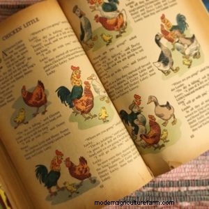 Why am I obsessed with poultry? I’ve been thinking about this lately as I watch my flock gamble across the yard. My grandparents were farmers, but they raised hogs. My parents and I lived in town and our pets were dogs. The only time I encountered a live chicken was one Easter morning when I discovered a tiny pink-dyed chick in my Easter basket. I was devastated when my parents would not let me keep it more than one day. Maybe that significant childhood loss planted the seed that grew into the desire for my own backyard flock. Or it might have been the story of Chicken Little in the Nursery Tale book my mom read aloud to me – I loved that story!