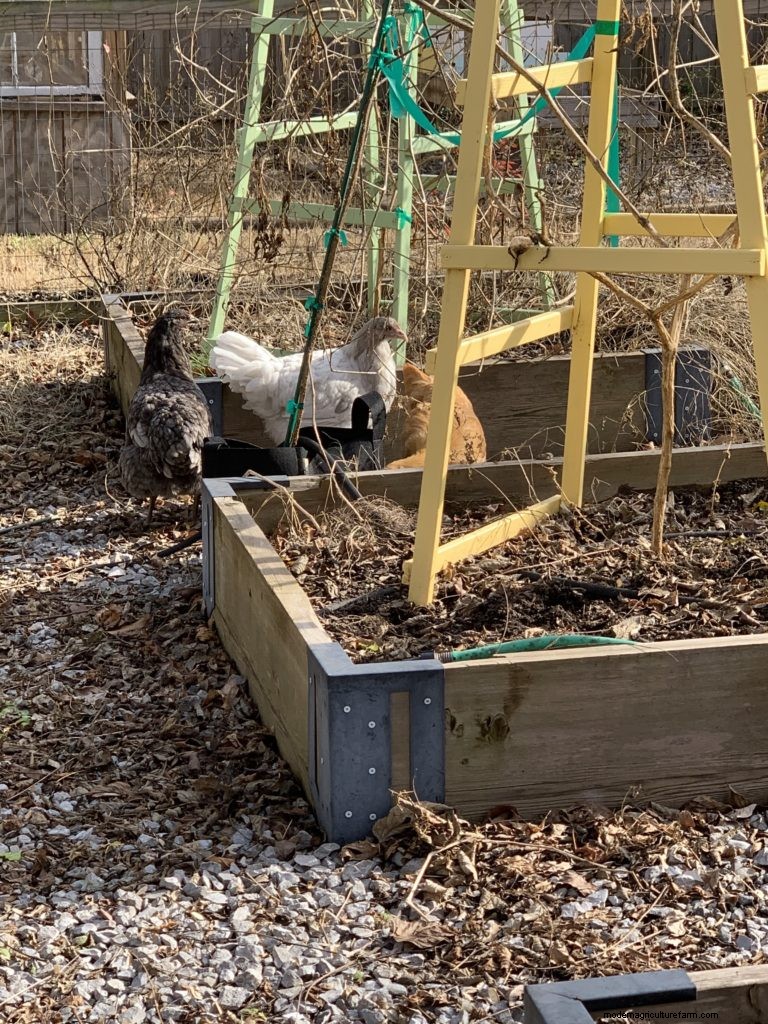 If you don’t plant cover crops, then from late fall to early spring, while your beds are dormant, chickens become ideal garden assistants.