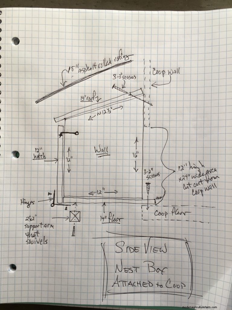 Building diagram side view of the nest box as it will attach to the coop. Photo by author