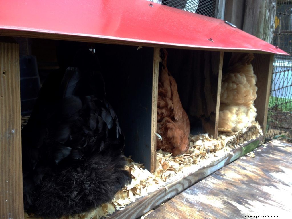 Hens have some basic requirements for nesting boxes. They prefer one box for every three to five hens. It only takes half an hour for them to plunk down on the nest and lay that day’s egg. If the boxes are all occupied, most hens will patiently wait their turn.