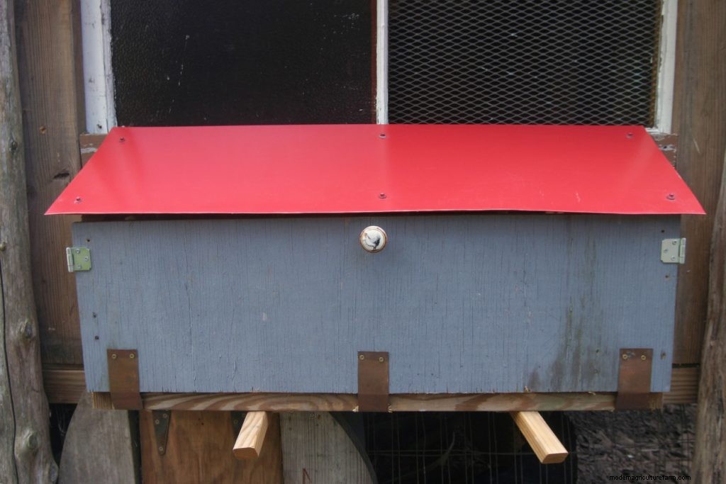 Attaching a nest box to the coop means it will be a dark space during the day when hens lay their eggs. If it’s protruding from the coop’s outside wall, it won’t be under the roosts. Mounting the nest box on one outside wall of the coop also makes it more accessible for hen keepers; you don’t have to enter the pen or the coop to gather eggs. This is a great timesaving innovation. Plus, you won’t get chicken poop on your shoes as you walk through the pen and back into the house to cook up an omelet.