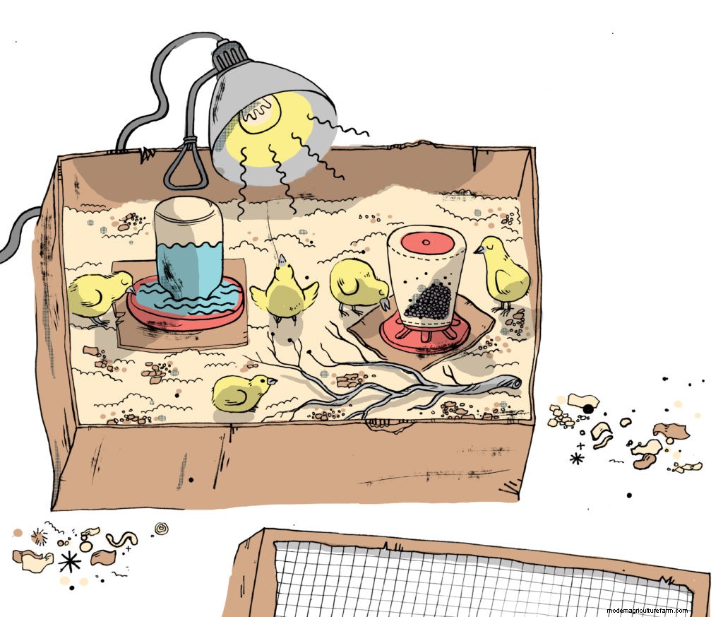 Everything your brooder needs. Drawing by James Gulliver Hancock.