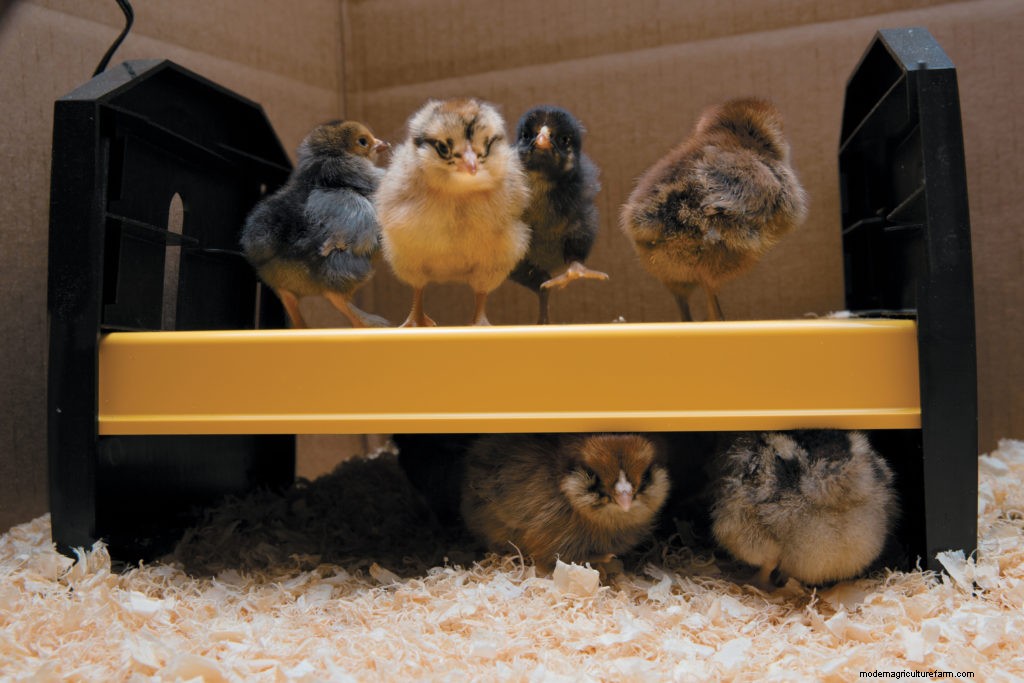 A safe alternative to a heat lamp is an EcoGlow Chick Brooder, which comes in two sizes and doubles as a perch! Photo by Keller & Keller Photography.