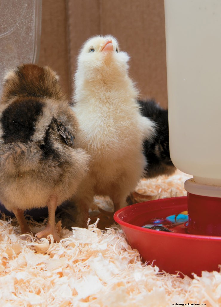 Add some marbles or rocks along the rim of the waterer to prevent drowning if a chick happens to fall asleep with its head resting on the rim. Photo by Keller and Keller Photography.