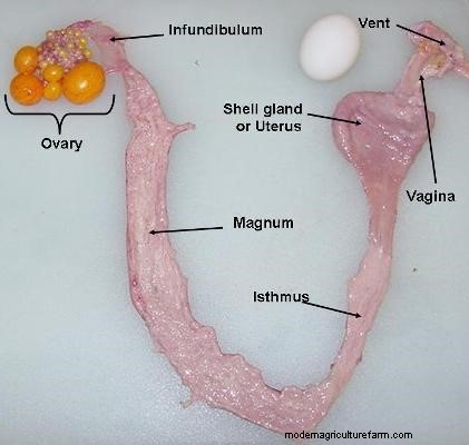Reproductive tract of a female chicken. Photo by Dr. Jacquie Jacob, University of Kentucky