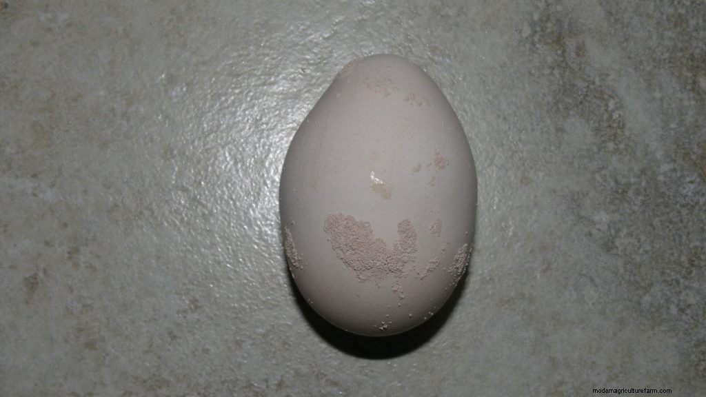 Calcium deposits can take the form of hardened masses or fine, sand-like particles that can easily be brushed off. Calcium deposits can often be attributed to a disturbance during the shell calcification while in the oviduct. Common disturbances include a predator, loud thunderstorms, or a bully hen. While it’s possible that excess calcium in the diet could be a factor, it’s not as common. As with many other shell abnormalities, a defective shell gland (uterus) could also be the cause.
