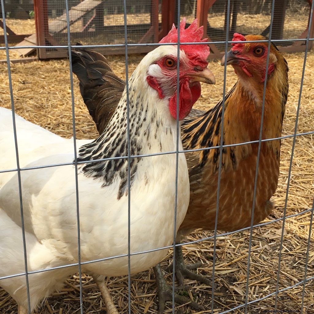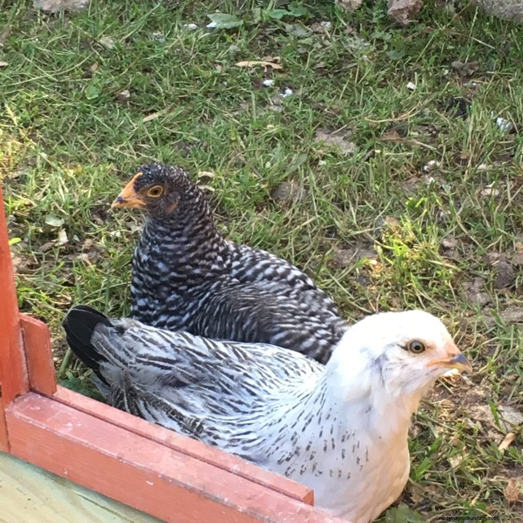 La Gordita pullet with a Barred Rock hen. Photo by author.