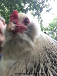 On the other hand, La Gordita, though by far the lightest weight of all the hens, looks chubby thanks to a muff that makes her neck look thick, and fluffy little puffs of feathers on her cheeks. She has no visible wattle. One of my granddaughters promptly named her ‘Chubby’. To soften the indignity of the name, I translated it to Spanish to make it a much more elegant sounding name.
