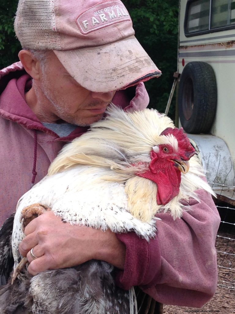 Matt with beautiful chicken. Photo by Janelle Wilkinson.
