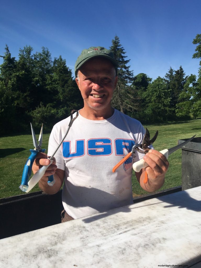Matt with processing tools. Photo by Janelle Wilkinson.
