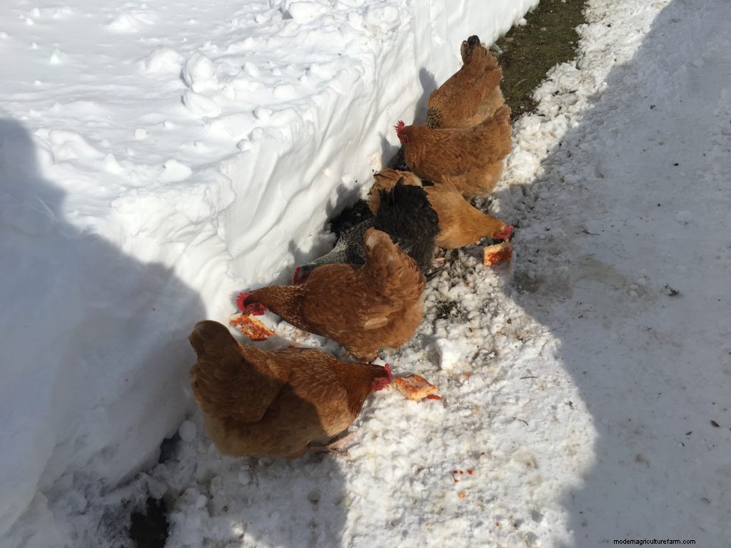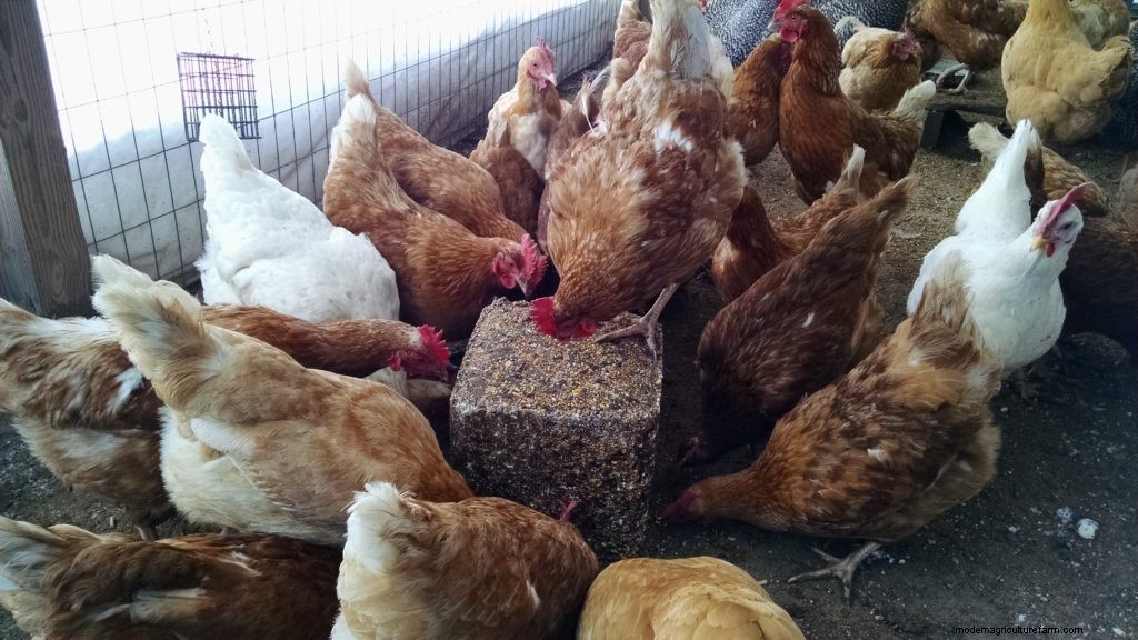 Activities and treats help beat the boredom in winter. A large treat block can keep the flock busy for days.