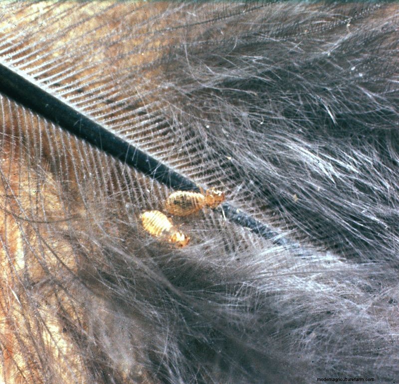 There are two suborders of lice, which are characterized by what they eat: The Mallophaga, or chewing lice, feed on skin cells and debris from feathers, and the Anoplura, or sucking lice, that feed on mammal blood. Once off the bird, lice will die in a few days. But while they’re on the bird, they can deposit numerous eggs, or nits, which will hatch within a week. Excessive preening is a telltale sign of a lice infestation in chickens. The stress from a bad lice infestation could cause birds to eat less, leading to weight loss, decreased egg production, and feather and skin damage in severe cases.