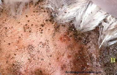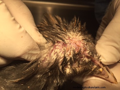 Northern fowl mite infestation. Photo courtesy of Dr. Jean Sander