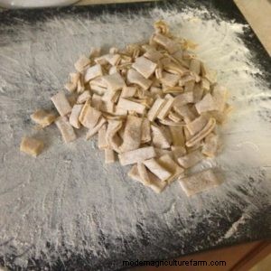 - Cut the noodles to desired shape and length, use a knife, pizza cutter, or pasta press