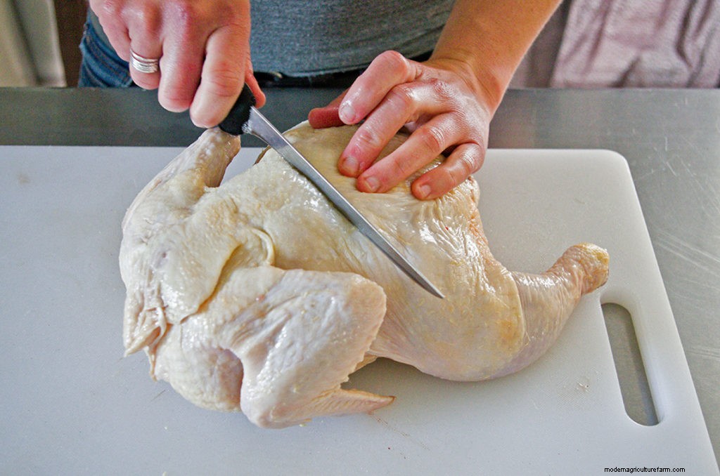 Learn Meredith Leigh’s method of butchering a chicken carcass into 8 pieces.
